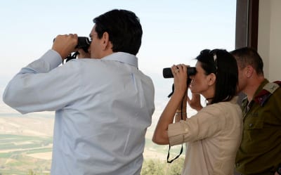 During a visit to northern Israel in June 2017, Israeli Ambassador to the United Nations Danny Danon (left) and U.S. Ambassador to the U.N. Nikki Haley (centre) look out over southern Lebanon. Credit: Matty Stern/U.S. Embassy Tel Aviv/Flash90.