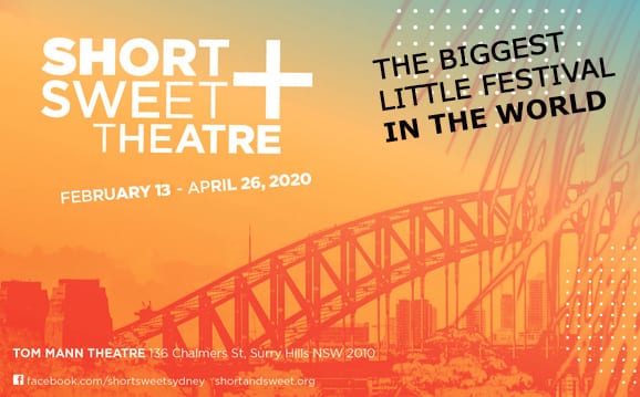 Short+Sweet Theatre opens at the Tom Mann Theatre, 136 Chalmers St, Surry Hills on 13 Feb and runs through to April 26 (Thurs-Sat 7.30pm, Sun 1pm and 6.00pm).