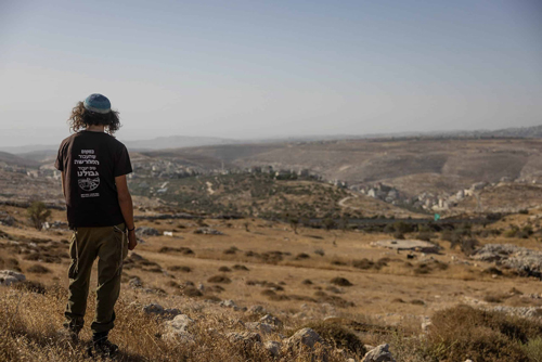 A resident of the Ramat Migron outpost in the Binyamin region of Samaria, Sept. 8, 2023. Photo by Chaim Goldberg/Flash90.