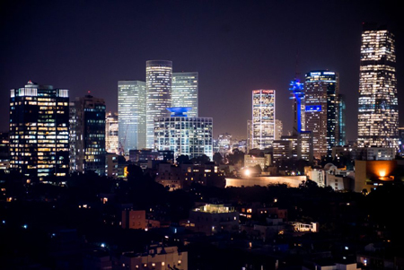 The skyscrapers of Tel Aviv at night on Nov. 10, 2019. Photo by Kobi Richter/TPS-IL