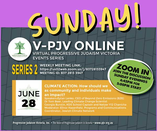 Make an impact on climate change by attending Progressive Judaism Victoria online.