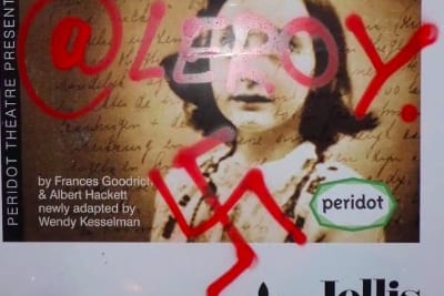 “Vandalised sites in Melbourne, the latest being on a promotion for a theatre production of The Diary of Anne Frank. These criminals have no shame and no sense of history” he writes.