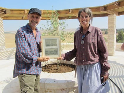 Along with Yoram, Keramim’s business manager, Daniela invited Gary to plant the olive tree, which Sharon noted was Gary’s favorite tree. Debby Rulnick, who is responsible for groups visiting Kramim, said that “in the future, the olive tree you have just planted will grow and give shade to the groups who will be learning here about ecology and the desert. This summer we have a group of eighteen Australians volunteering at Kramim and working in the vineyard, the nursery school, the neighboring Bedouin towns, and more.