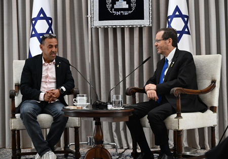 During their meeting, Sharabi presented the President with his book “Hostage”, a powerful and rare testimony of his harrowing experience in captivity. He also announced that the book has been translated into English and will be published in the United States on the second anniversary of the October 7 massacre.