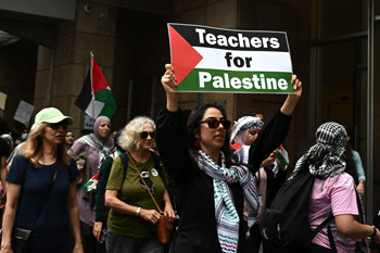 Victorian teachers could be reprimanded for bringing their support for war-torn Palestine into school classrooms as part of a union-linked move.