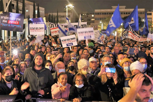 More than 20,000 Israelis gathered on Tuesday night in the centre of Tel Aviv for a protest rally against what they are calling the “Bennett-Abbas” government, led by Prime Minister Naftali Bennett and supported by the Islamist Ra’am party and its head Mansour Abbas.