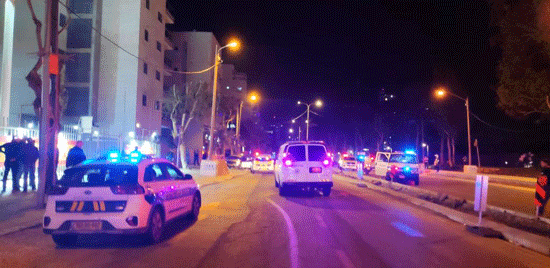 Security forces and ambulances at the scene of a shooting attack in Hadera, where two Arab-Israeli terrorists, citizens of the city of Umm al-Fahm, murdered two Israeli Border Police officers and wounded three Israelis. The terrorists were shot dead by Israeli policemen. Hadera, Mar 27, 2022. Photo by Tsuriya Zeevi/TPS