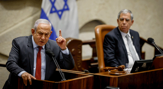 Israeli opposition leader Benjamin Netanyahu speaks during a plenum session at the Knesset, on Feb. 7, 2022. Photo by Olivier Fitoussi/Flash90