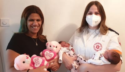 The birth of Gilat Yosef’s twins began at her home in Kiryat Ata but she did not expect the drama to come.