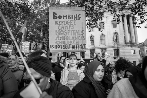 A pro-Palestinian protest in London, a week after Hamas murdered 1,200 people in southern Israel and took more than 250 others hostage into the Gaza Strip, on Nov. 4, 2023. Credit: Alisdare Hickson/Flickr via Wikimedia Commons.
