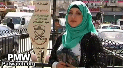 In conjunction with the square-naming, the Palestinian television station Awdah sent a crew to visit Abu Sharakh’s mother. Here’s how they introduced her: “Mother of Martyr Naif Abu Sharakh gave both her sons for the land and the homeland. Let’s meet her. We are very happy to meet you and very proud of you. A Palestinian mother such as yourself, whom we are proud of, you have given two of your sons for the homeland.” (Translations courtesy of Palestinian Media Watch.)