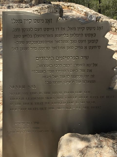 The song also became the anthem of those incarcerated in the ghettos and camps, and was recited or sung by the many Jews on their way to their deaths.