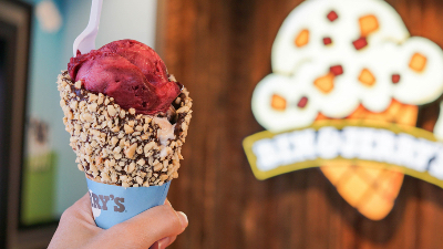 Ben & Jerry’s berry sorbet on a chocolate-almond cone. Credit: Kate33/Shutterstock