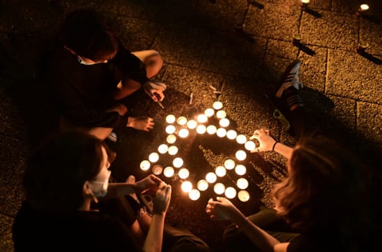 Some of the 25,000 candles lit at Rabin Square in Tel Aviv in honor of the 25th Memorial Day for the assassination of late Prime Minister Yitzhak Rabin, at Rabin Square in Tel Aviv on Oct. 29, 2020. Photo by Tomer Neuberg/Flash90.