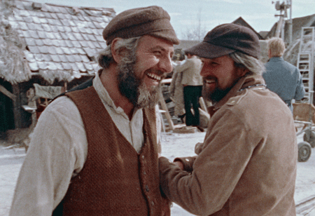 One of its strengths is interviews with the actresses who played Tzeitel, Hodel and Chava—the older three of Tevye’s five daughters. Rosalind Harris, who plays Tzeitel, says that for years she was embarrassed about her Jewish looks until Barbara Streisand became famous. Bette Midler, who had the role on Broadway, knew she was not wanted for the film role and advised Harris to get her behind down there to try out. Michelle Marsh says there was insecurity on her part as she wasn’t Jewish, but Jewison sent her a reassuring note that she was the Hodel he wanted. Neva Small, who played Chava, said it was a great production that allowed her component of “Matchmaker, Matchmaker” to come off as a ballad.