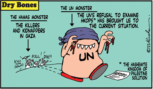 Author’s note: The cartoon — commissioned exclusively for this article — is by Yaakov Kirschen aka “Dry Bones”- one of Israel’s foremost political and social commentators — whose cartoons have graced the columns of Israeli and international media publications