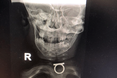 The parents, residents of the eastern Jerusalem neighbourhood of Shuafat, immediately took the boy to a local clinic, where an X-ray showed the ring was stuck in the boy’s throat. Clinic staff sent the family to Shaare Zedek to have the ring removed. Although the boy was not having difficulty breathing, the staff worried that the ring’s jagged edges might damage the esophagus.