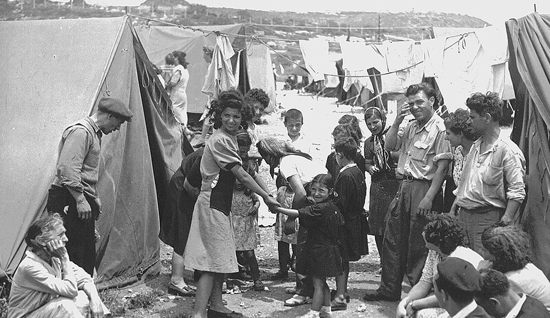 Jewish refugees at a Ma’abarot transit camp in Israel, 1950. Credit: Wikimedia Commons.