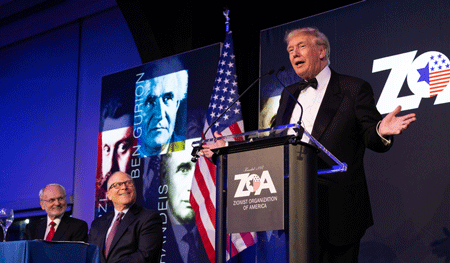 Former U.S. President Donald Trump is awarded the Theodor Herzl Gold Medallion at the Zionist Organization of America’s 125th anniversary Gala in New York City, November 13, 2022. Credit: Courtesy.