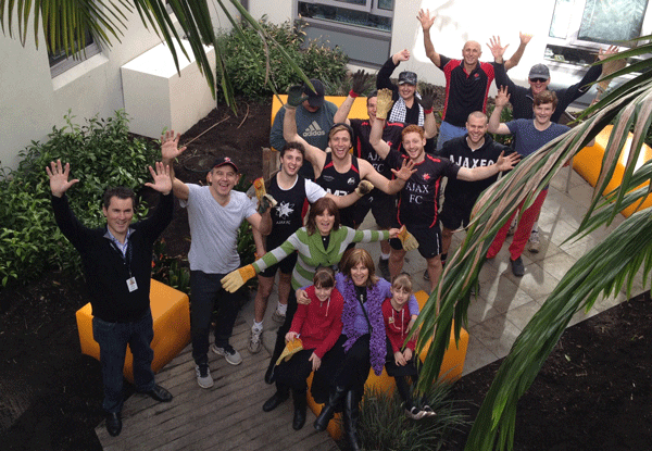 Players from AJAX Football Club volunteered to roll up their sleeves and get their hands dirty at a Gary Smorgon House Working Bee.