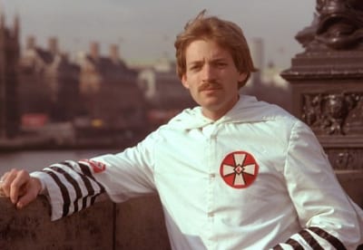 American neo-Nazi, antisemitic conspiracy theorist, Holocaust-denier and former Grand Wizard of the Ku Klux Klan David Duke outside the House of Parliament in London, 1978. Credit: Wikimedia Commons