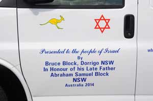 One ambulance was purchased thanks to the community’s wonderful response to the Red Sunday Telethon in July coinciding with the beginning of Operation Protective Edge. The other was the result of a donation made by Bruce Block, an elderly cattle farmer in remote NSW. In his note accompanying the cheque, Bruce said that he “wanted to help MDA in the only way that I could, to fund a fully equipped ambulance for MDA’s fleet to assist against the continual rocket attacks from Hamas in Gaza.” The ambulance was dedicated to the memory of Bruce’s late father, Abraham Samuel Block.
