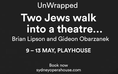 Brian Lipson and Gideon Obarzanek’s irreverent, Two Jews Walk into a Theatre… sees two of Australia’s most-loved performers meet as their fathers on stage, all the intimacy, understanding and horror that only a son can supply.