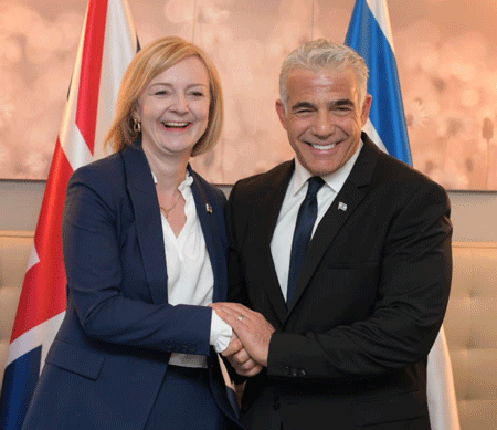UK PM Liz Truss and Israel’s PM Yair Lapid Photo: Avi Ohayon (GPO)