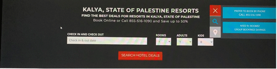 Websites like Reservations.com (image below), Champion Traveler and Zen Hotels have also been using the term “State of Palestine” to identify the location of holiday destinations in Judea and Samaria.
