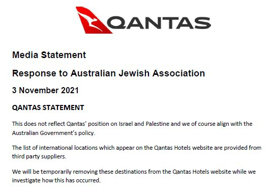 Many travel agents, tour operators and airlines seem to have been unwittingly caught up in the Arab-Jewish conflict – as the case of Australia’s national airline – Qantas – has exposed.