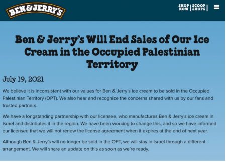 Ben and Jerry’s press release headlined “Occupied Palestinian Territory” (below) has clearly influenced Unilever’s decision to justify its policy of discriminating against Jews living there – whilst being more than happy to continue selling its ice cream to those Jew-haters who: