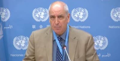Michael Lynk, U.N. special rapporteur on the “situation of human rights in the Palestinian territories occupied since 1967,” speaks at a press briefing in October 2018 at the United Nations. Source: Screenshot.