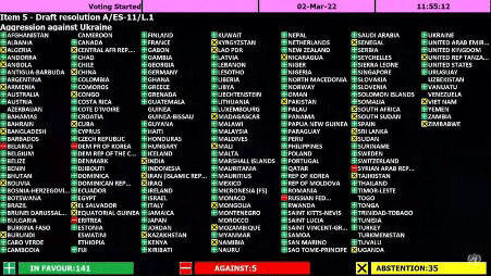 - 35 countries abstained from voting.