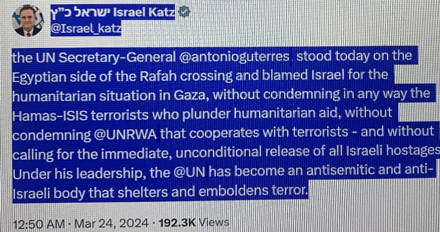 Israel’s Foreign Minister Katz outed Guterres and the United Nations on 24 March 2024: