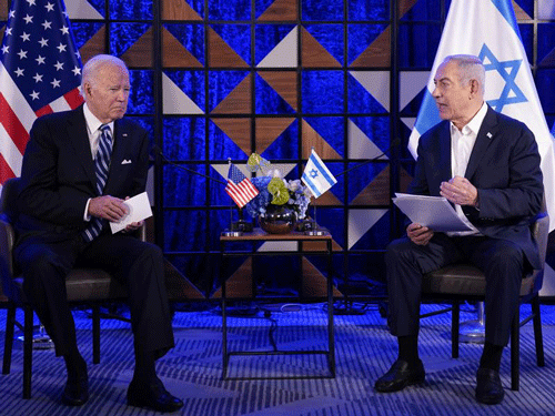 Joe Biden met with Benjamin Netanyahu amid outrage and recrimination over the Gaza hospital blast. (AP PHOTO)