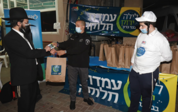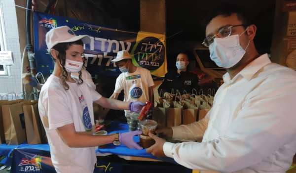 Each person gets a takeaway bag with Coke, challah and cholent after the vaccine.