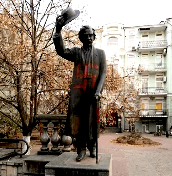 Vandals scrawl swastika on monument to Sholem Aleichem in Kiev