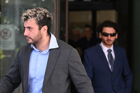 Justen Abdul-Khalek (right), 31, and Marcel Ghabbar (left), 31, leave the Downing Centre Local Court, in Sydney, Wednesday, November 8, 2023. AAP Image/Dean Lewin