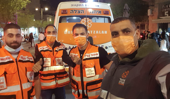 Jewish and Muslim volunteers on an ambulance shift in Jerusalem. Credit: United Hatzalah.