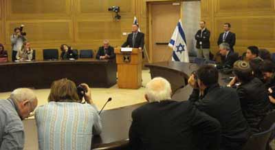 Yuli Edelstein, Knesset Speaker addressing the media.