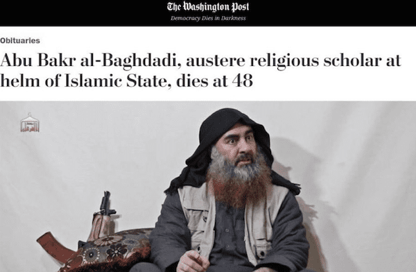 ‘Washington Post’ calls dead ISIS leader al-Baghdadi an ‘austere religious scholar’