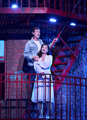 Billy Bourchier as Tony and Nina Korbe as Maria in West Side Story on Sydney Harbour.