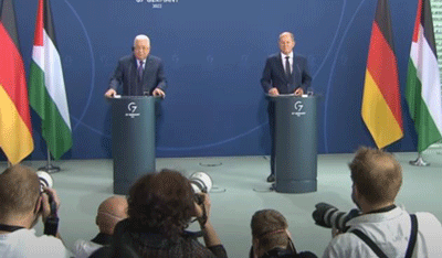No. 3 on the SWC list: Palestinian Authority leader Mahmoud Abbas (left) says Israel committed “50 Holocausts,” speaking while standing alongside German Chancellor Scholz during a press conference in Berlin, Aug. 16, 2022. Source: YouTube.