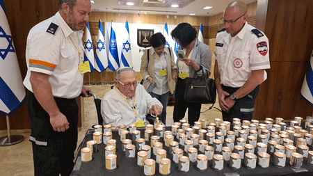 MDA Paramedic Meir Valder and MDA Senior EMT Tomer Bar Levy: “We were very excited to assist Mr. Aharon Shechter to travel to Jerusalem, and to accompany him throughout the day. We heard about his childhood that ended abruptly at age 10 when the Jews were deported from his village in Romania, about the horrors of the past, and the inhuman conditions that he survived, and we were very emotional when he told us he was proud to have fought in Israel’s wars, built his lifetime’s work in farming, and of course a large family. It isn’t every day that we have the privilege to actively participate in remembering and preservation. Mr. Aharon Shechter’s visit to the Knesset and “Yad Vashem” today is precisely this privilege.”