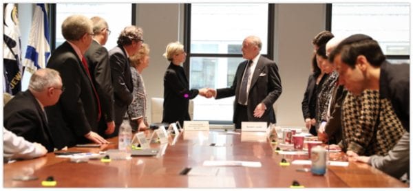 WJC President Ambassador Ronald S. Lauder with Consul General of France Anne-Claire Legendre at the WJC headquarters in New York on 29 March 2018.