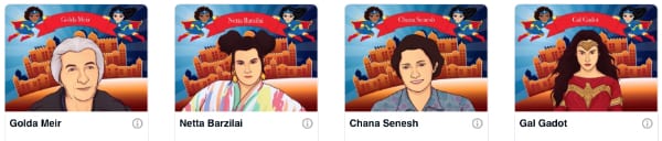 The creator, Chaykee Mor – part of the creative Ji team, gives a nod to the actress Gal Gadot and her passion for advocacy and Golda Meir for her insight and staunch Zionism; the app asks each child how they can do the same in a difficult situation. Chaykee focuses on different women in Israel’s current political/entertainment landscape and further back in time, pre-state and post-state declaration. The women featured come from the world of sports, song writing, politics, and beyond as an acknowledgement that ambition and inspiration come in many unique forms and there’s a space at the table for all talents and skills.