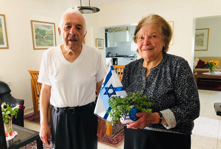 Holocaust survivor Naim Shabo and his wife, Chana, in Jerusalem on Israel’s Holocaust Remembrance Day, April 21, 2020. Photo by Eliana Rudee.