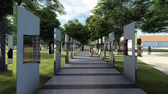 “Through the Lens of Faith” works in Auschwitz to present the experiences of Holocaust victims and survivors, and how faith helped them persevere. June 2019. Photo courtesy of Daniel Libeskind.