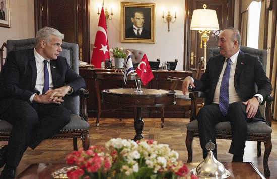 In a further sign of Israel’s improving relationship with Turkey, Foreign Minister Yair Lapid arrived in that country on Thursday and met with his counterpart, Turkish Foreign Minister Mevlut Cavusoglu, in Ankara.