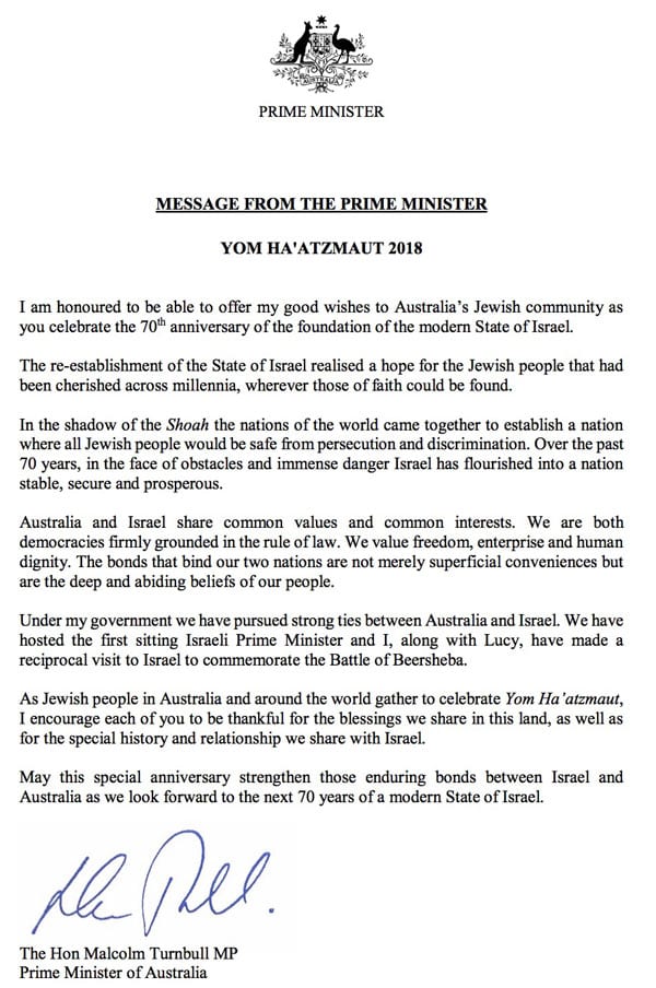 Well said Prime Minister. What about following words with action ! Consider the leading of President Trump – officially recognise Jerusalem as capital of Israel and move our embassy. Actions speak louder than words however good and sincere the words are. Shalom to you, your family and parliament. A Christian so very in debt to the Jewish nation.